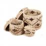 These baskets are woven in grass and finished with cotton thread.