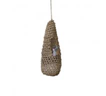 Repen oud papier van 1,5cm bij 25 cm worden opgedraaid tot sterke touwen die op hun beurt gebruikt worden om te vlechten.