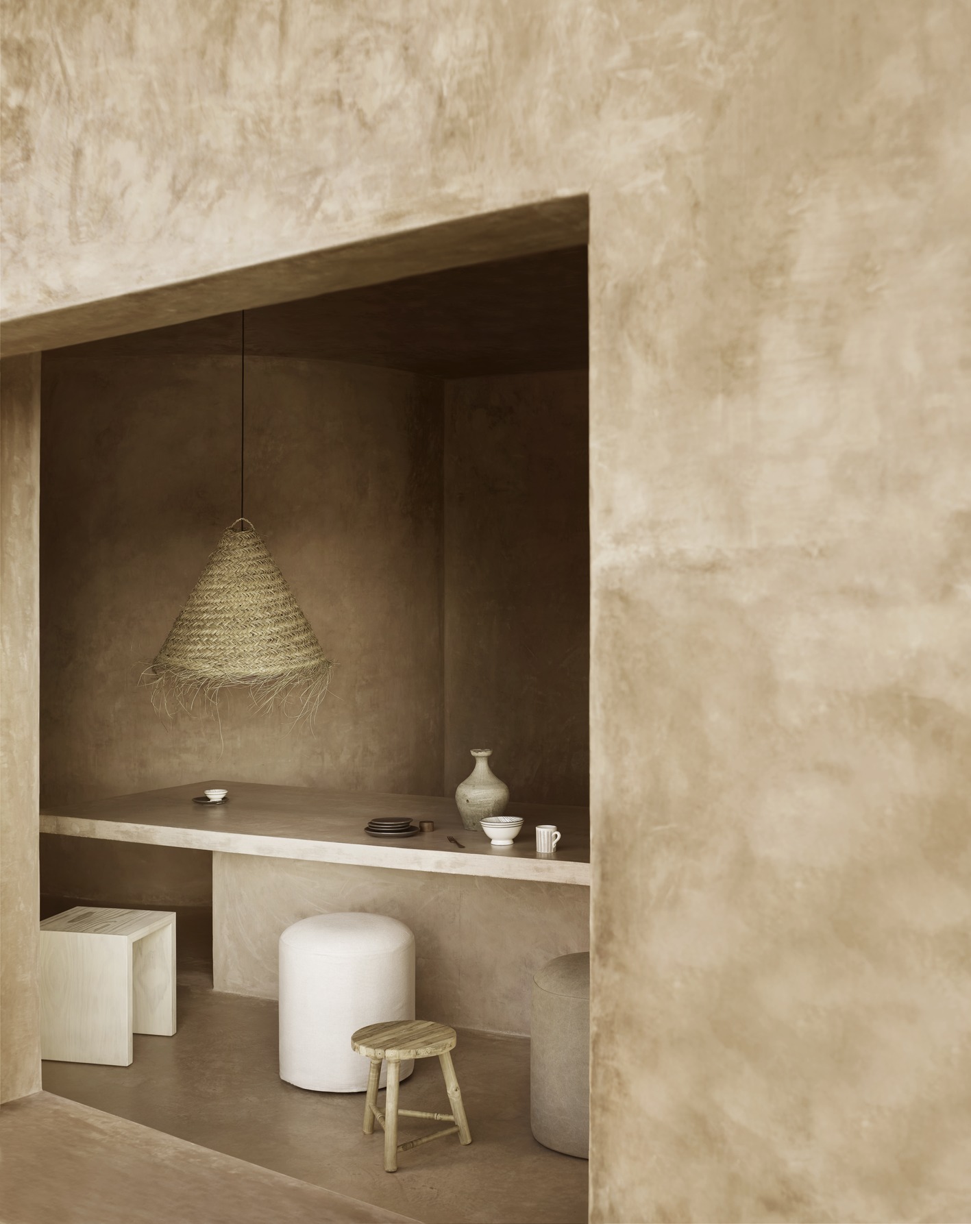 Kegelvormige lampenkap gemaakt van bladeren van de dadelpalm.